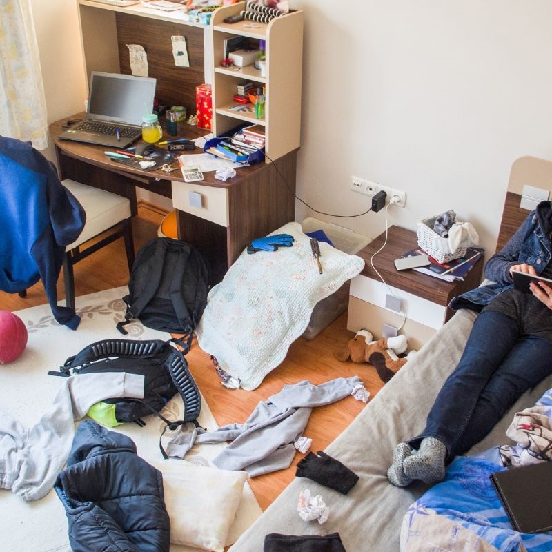 Beginning with desktops, floor space, and the tops of dressers and tables, continue to other areas of the room.
